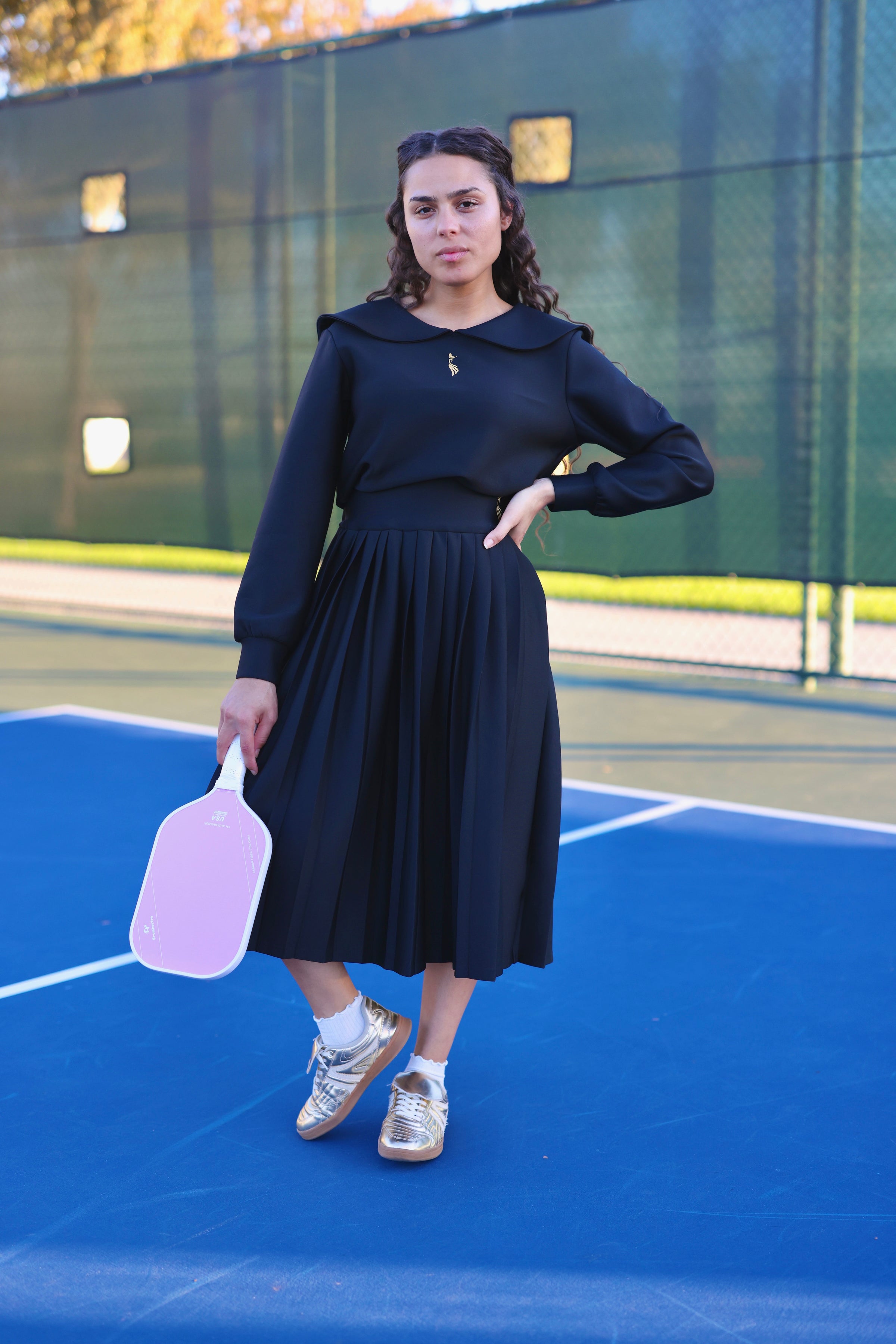 The standout Peter Pan collar creates an unmistakable signature look, adding a soft yet powerful touch of sophistication that sets this set apart from anything currently on the market. It’s charming, polished, and intentionally bold — making the Rico Tennis Set instantly recognizable.