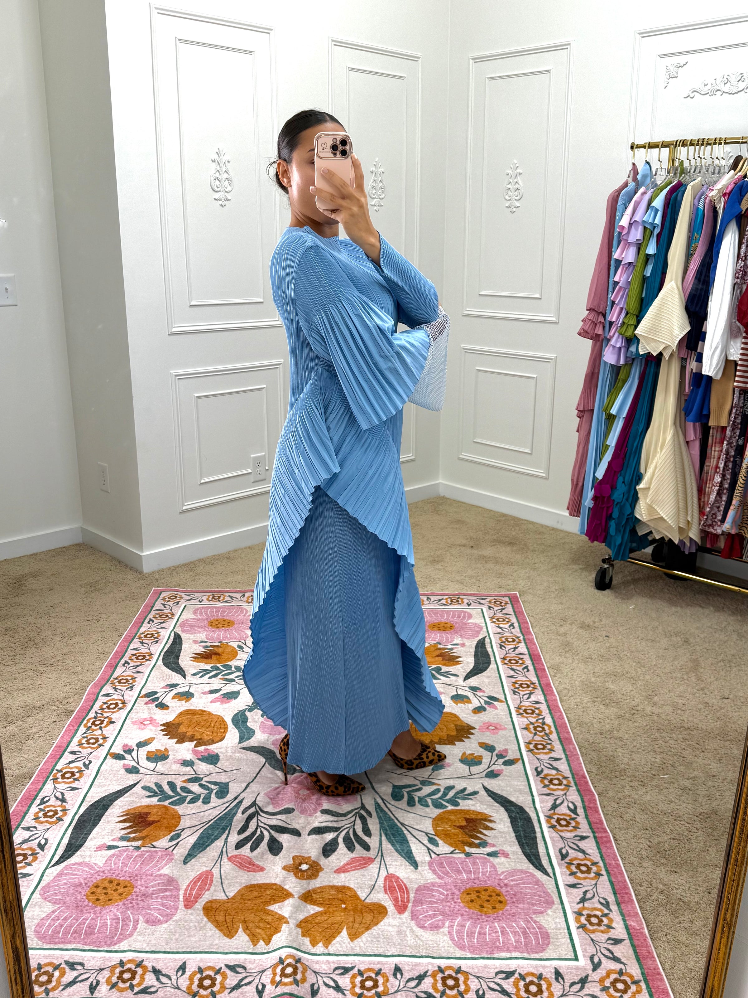 Wash separately on cold delicate cycle and air dry. Do not dry clean or use a dryer. If your item arrives with wrinkles, gently steam in a vertical motion. Avoid steaming pleats to avoid damage.
