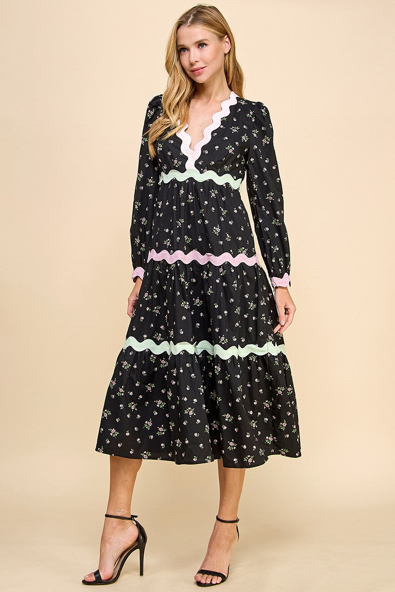 • Tiered skirt design with ric rac trim for added dimension and detail