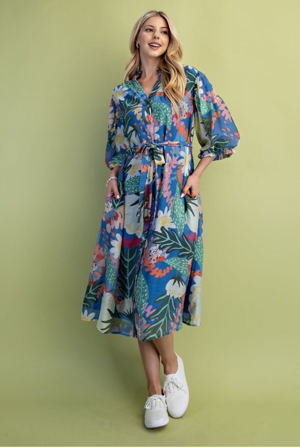 Bright, playful, and effortlessly chic—this floral dress brings a pop of color to any day. Its breathable fabric and soft drape make it perfect for sunny moments and relaxed elegance.