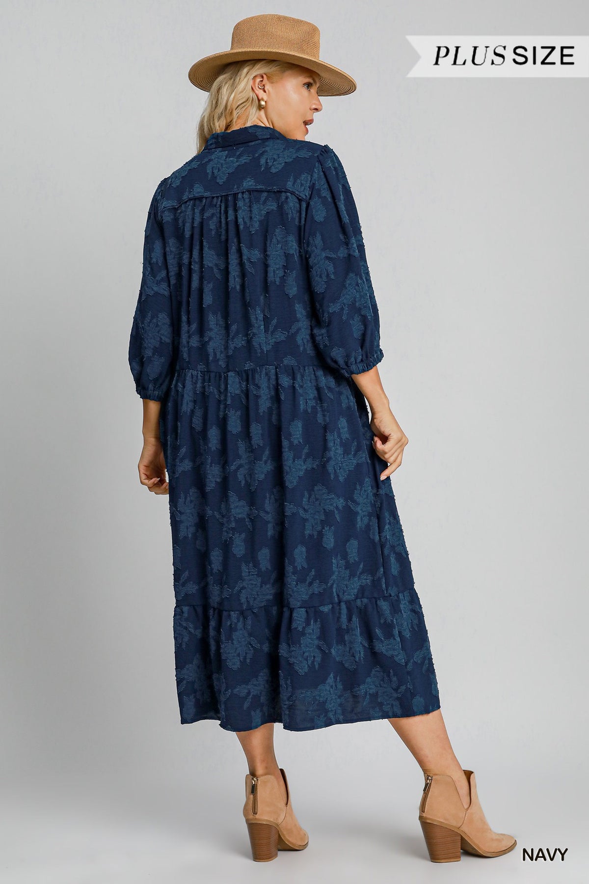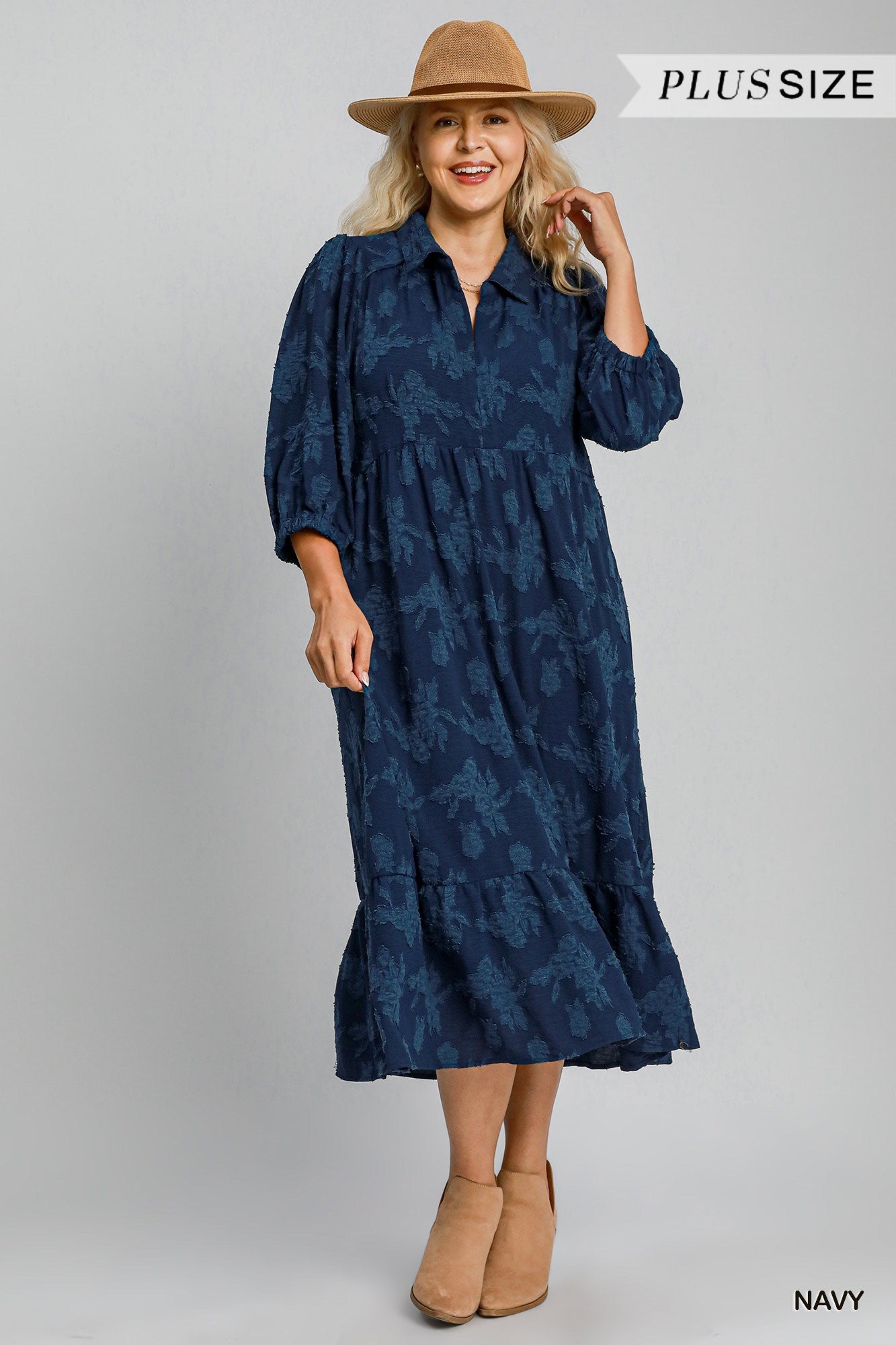 This floral jacquard midi dress blends comfort with refined texture, offering an easy, flattering silhouette perfect for days when you want to look put-together with minimal effort. A lovely choice for year-round wear.