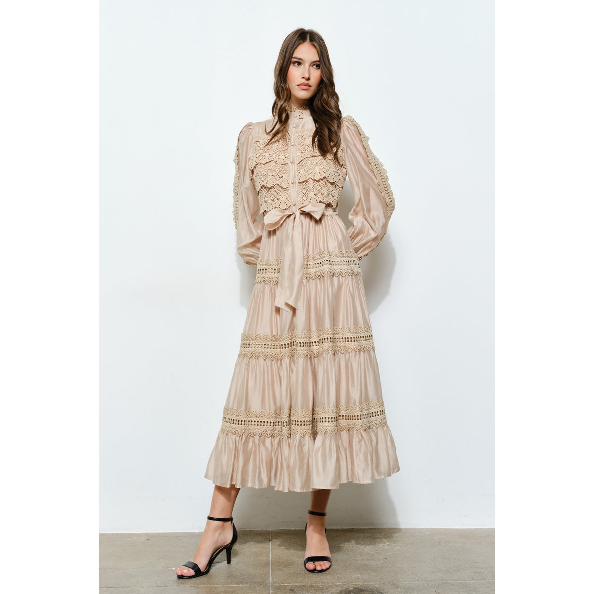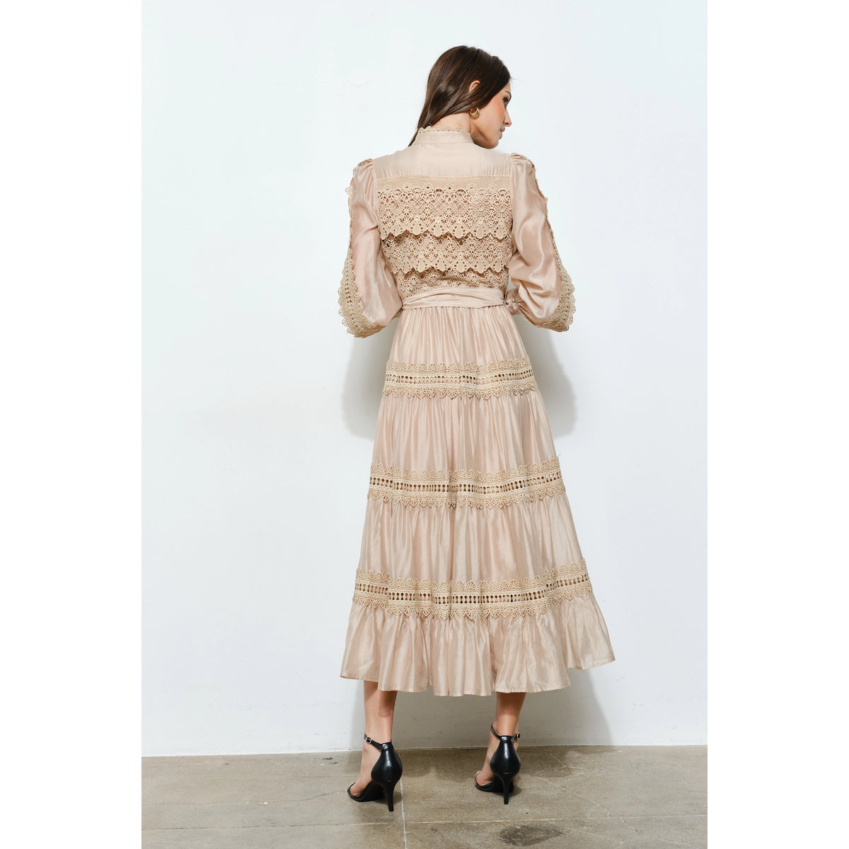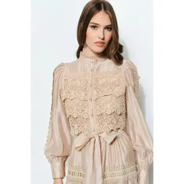 • Intricate crochet-style lace panels with a vintage-inspired charm