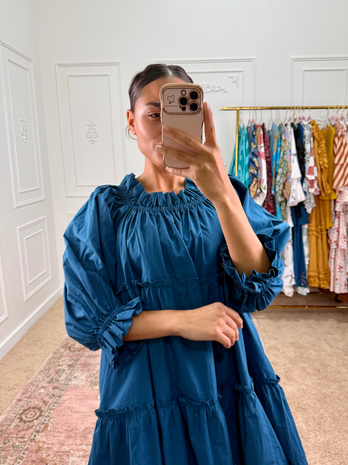 The Sara Dress is one of those easy pieces you’ll find yourself reaching for over and over. It’s comfy, lightweight, and has the prettiest square neckline—plus pockets (because we all need those!). Whether you’re running errands, grabbing coffee, or heading to brunch, this dress makes getting ready simple and stylish. Comes with a matching bag to store your dress safely while traveling or in your closet. Wash cold gentle cycle and hang dry.