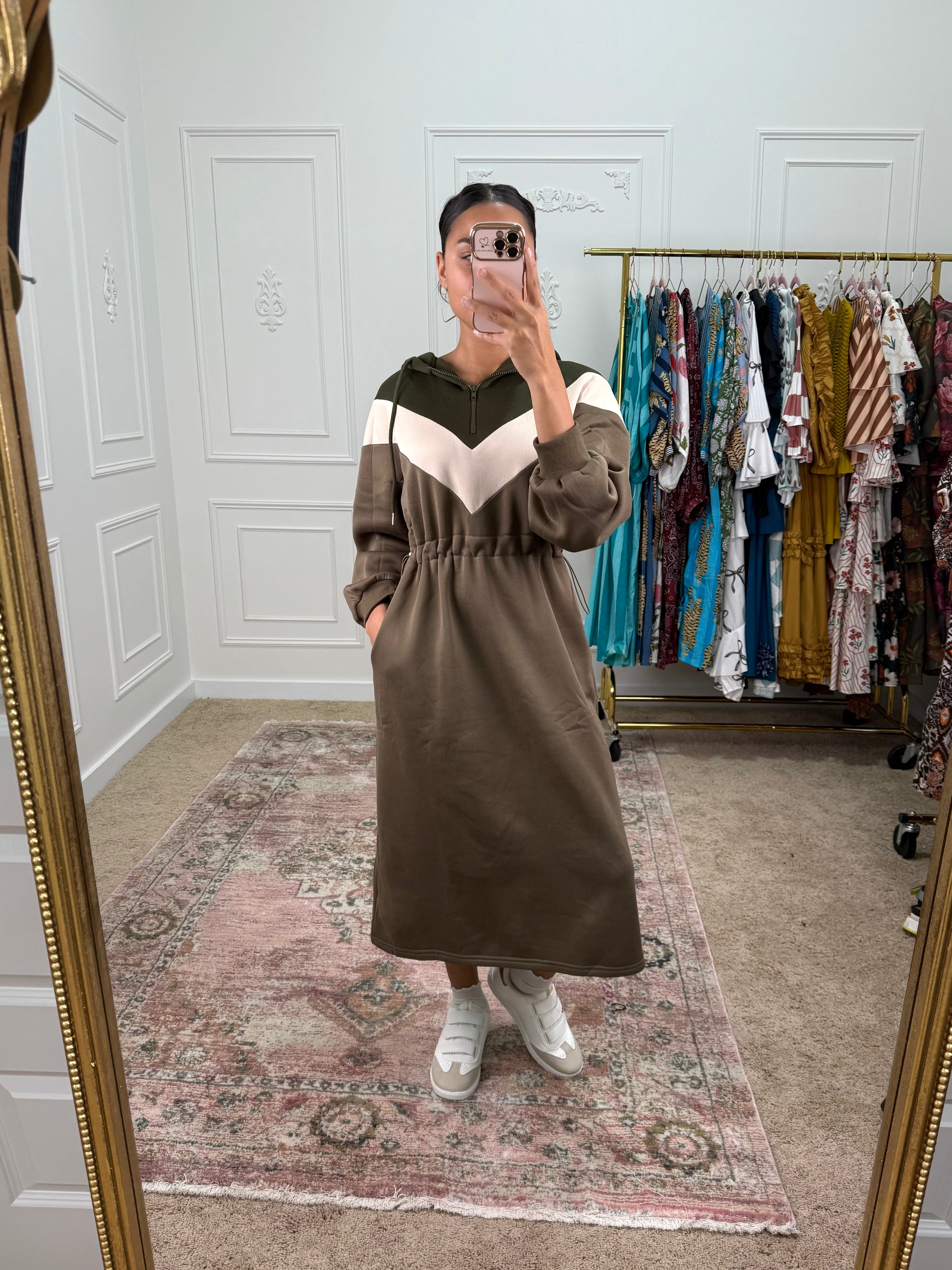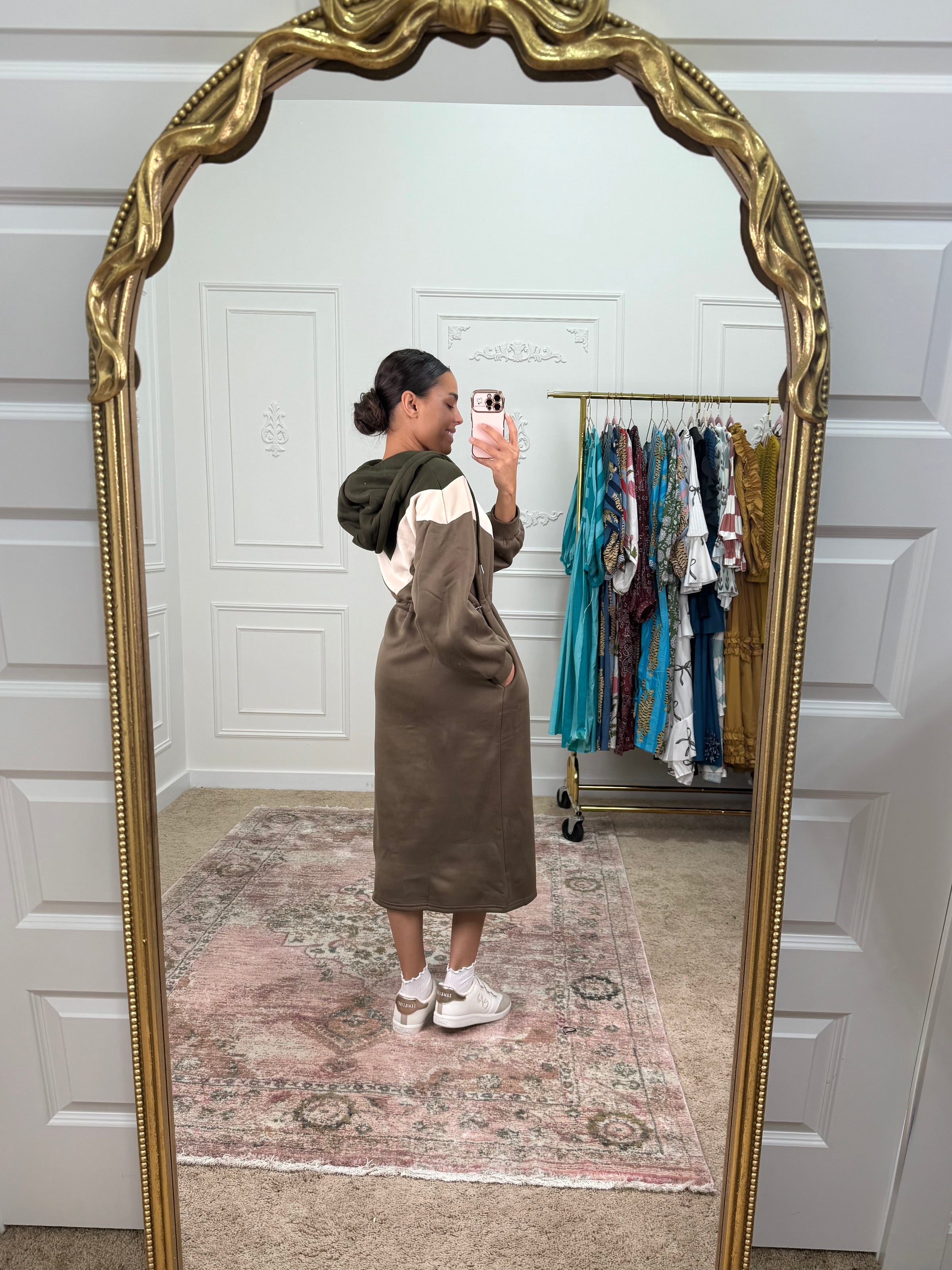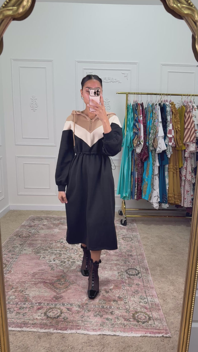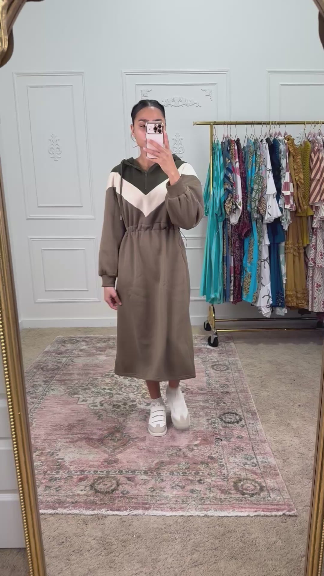 This hoodie dress blends laid-back comfort with contemporary style — ideal for running errands, weekend lounging, or pairing with sneakers for an effortlessly cool look.