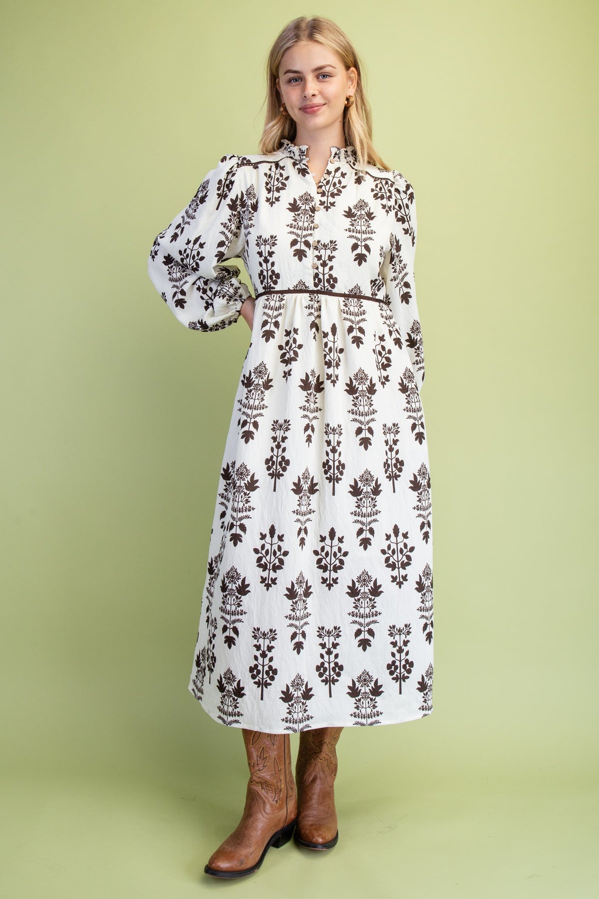 Elevate your wardrobe with this chic Floral Print Smocked Neck Midi Dress, designed with intricate trim details for a refined finish. The smocked neckline and subtle puff sleeves add a romantic flair, while the lined construction ensures both comfort and coverage. Perfect for seasonal gatherings, casual outings, or day-to-evening wear, this piece balances effortless elegance with timeless appeal.