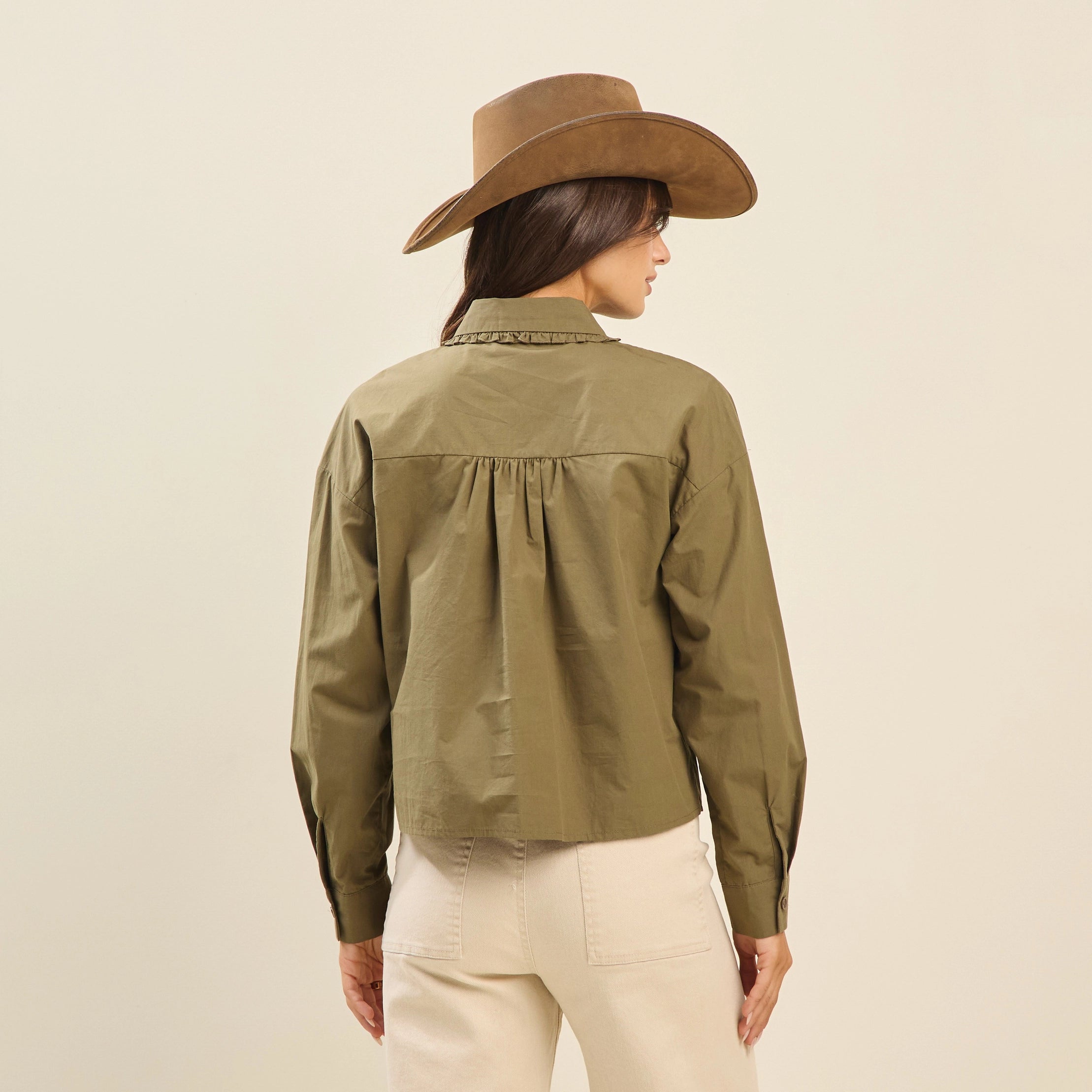 • Long sleeves with button cuffs