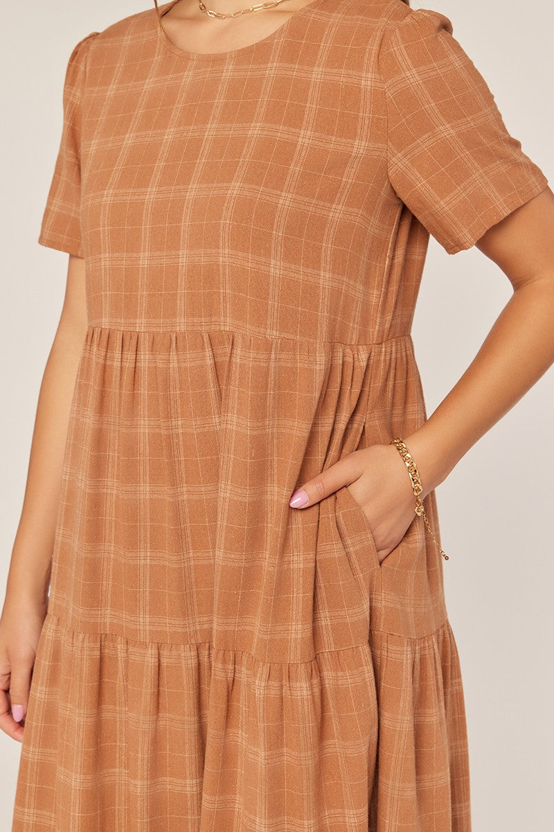 Designed for effortless wear, this plaid midi dress blends comfort and simplicity with a polished finish. The tiered skirt adds subtle shape while the breathable cotton fabric makes it ideal for all-day wear. Perfect for casual outings, church, or everyday moments when you want to feel put-together without trying too hard.