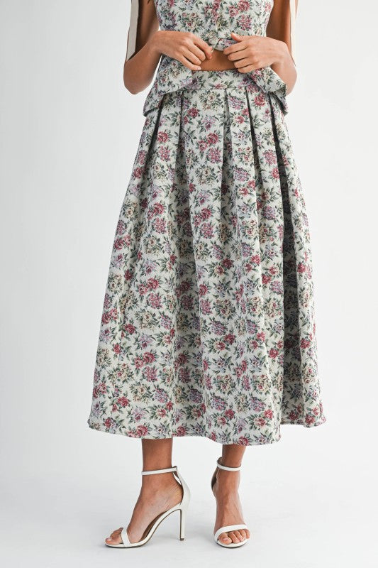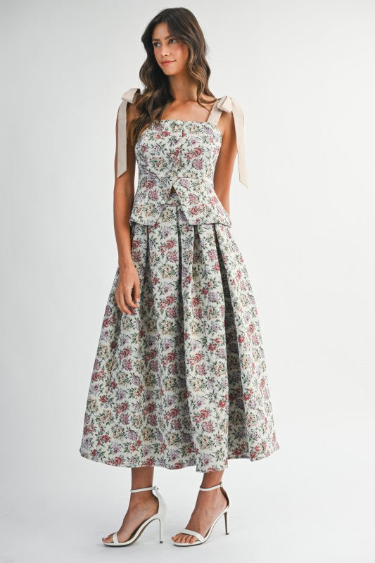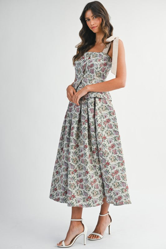 A timeless and romantic set perfect for special occasions, garden parties, or elegant soirées. The soft floral print and structured peplum design create a polished yet graceful look.
