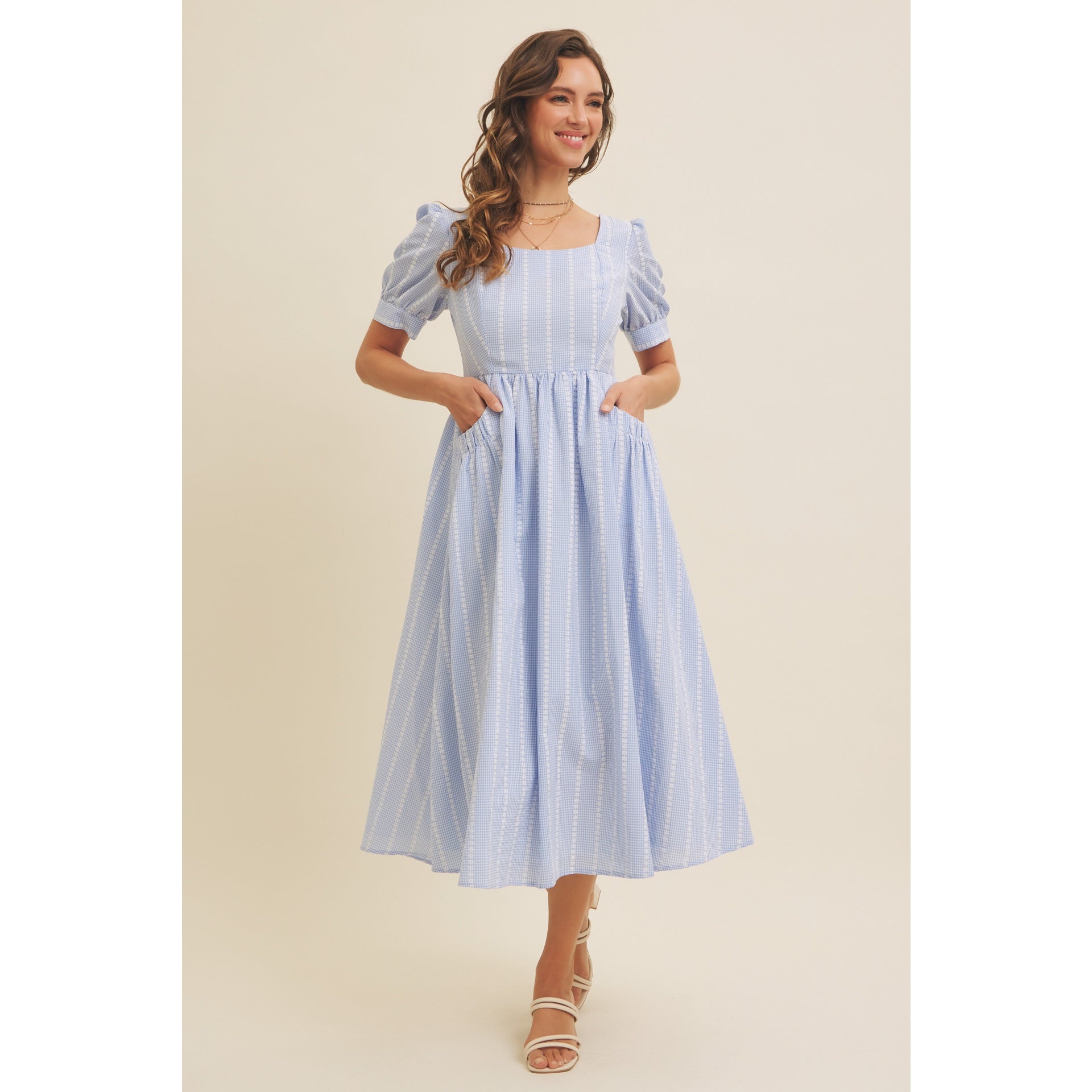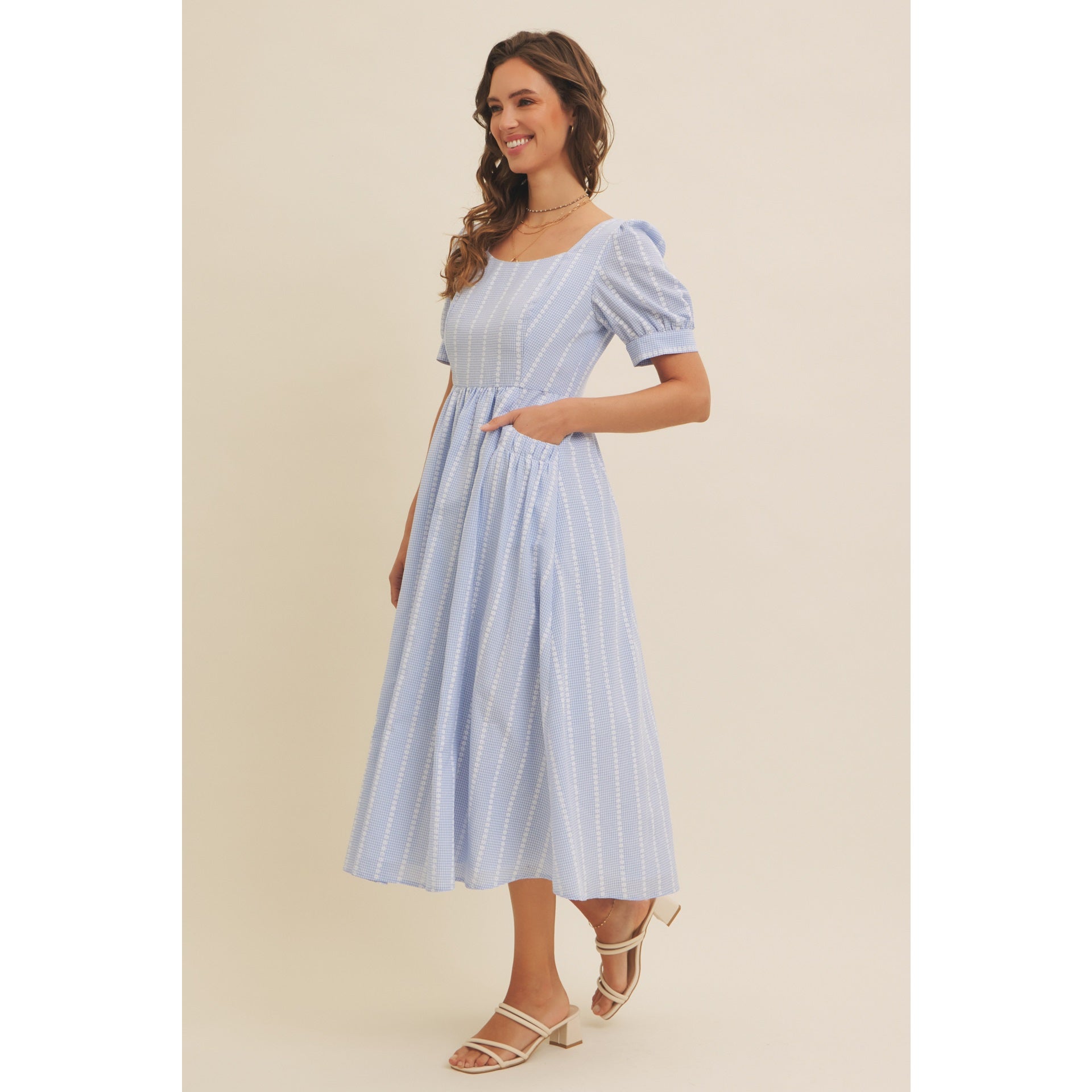 Charming and effortlessly elegant, this embroidered gingham midi dress is perfect for picnics, garden parties, or Sunday gatherings. Pair it with sandals or wedges for a timeless look.