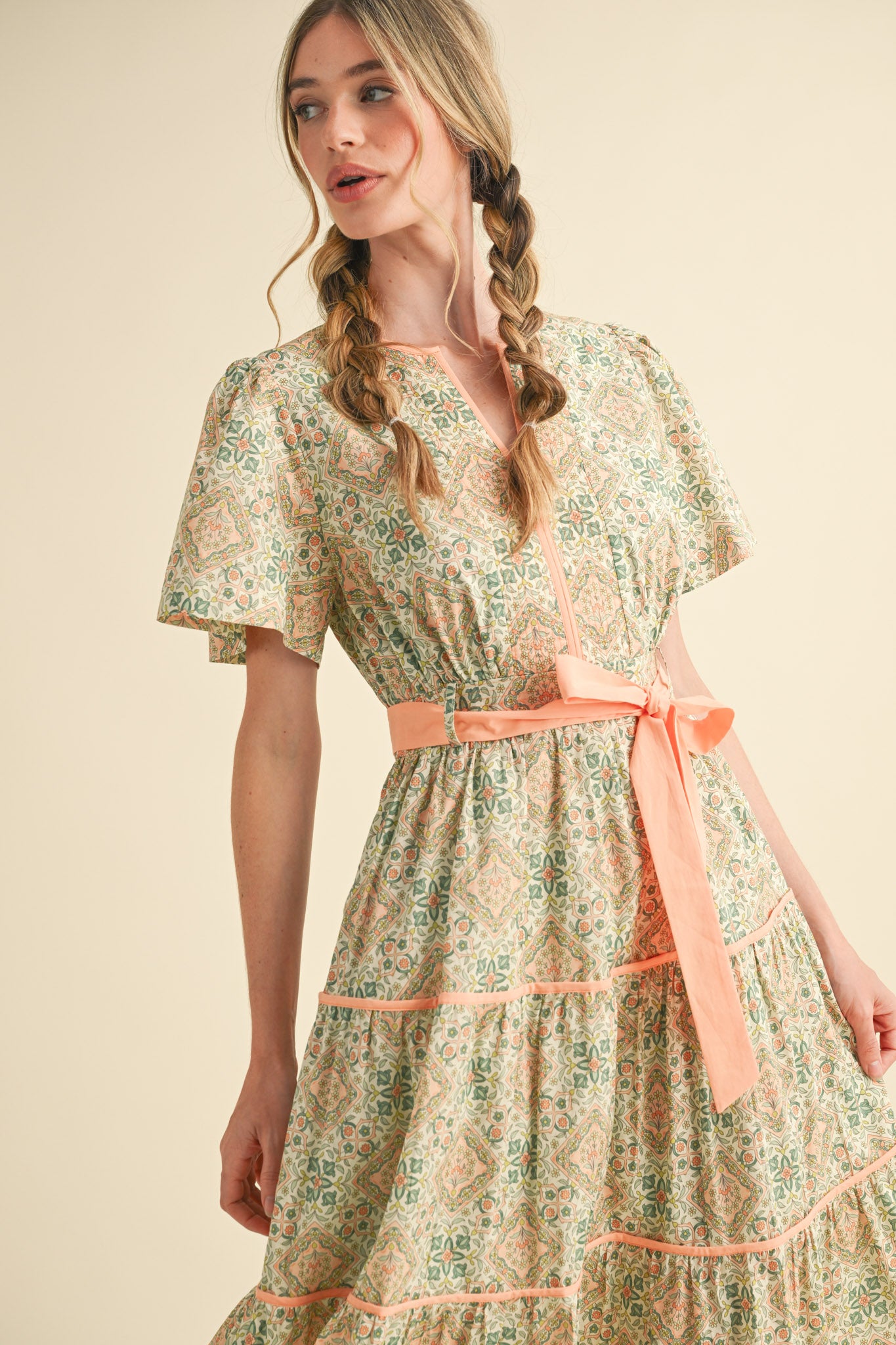 • True to size with adjustable waist tie and smocked back