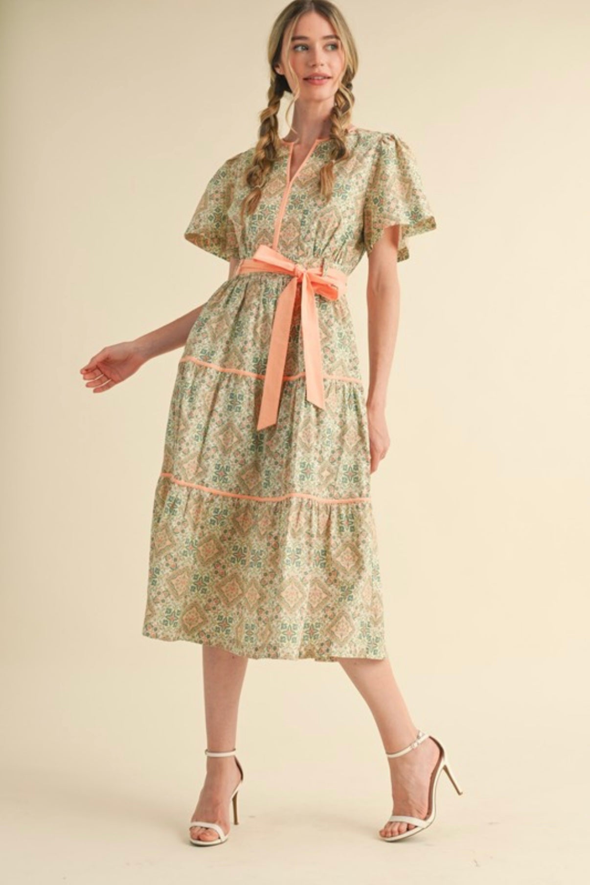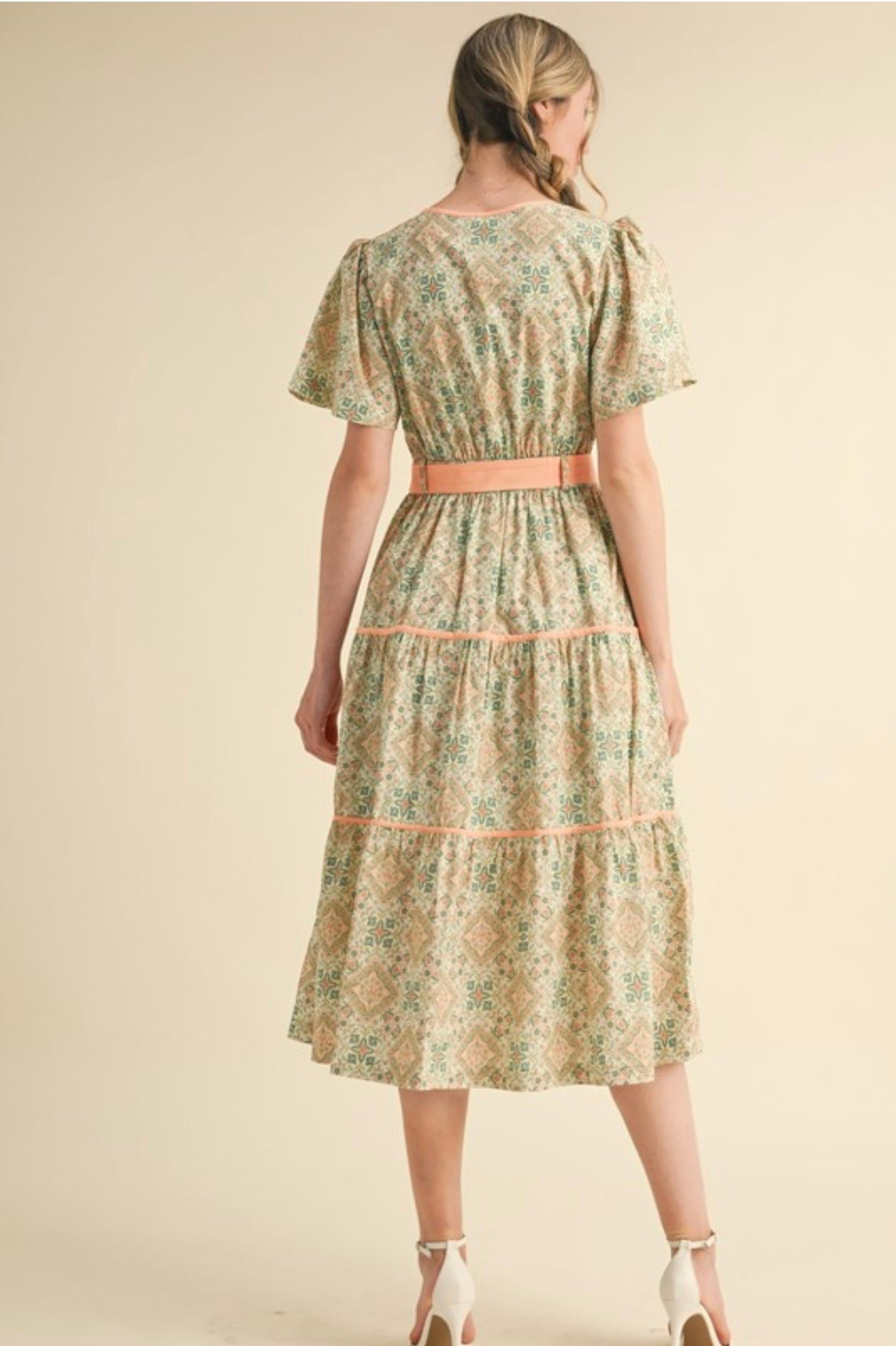 This midi dress blends effortless elegance with charming contrast details, perfect for daytime outings, brunch, or casual occasions.