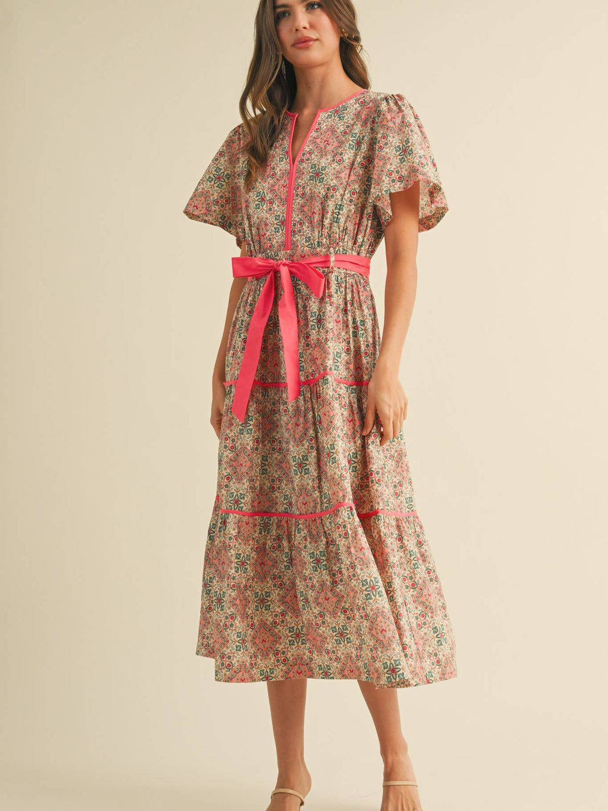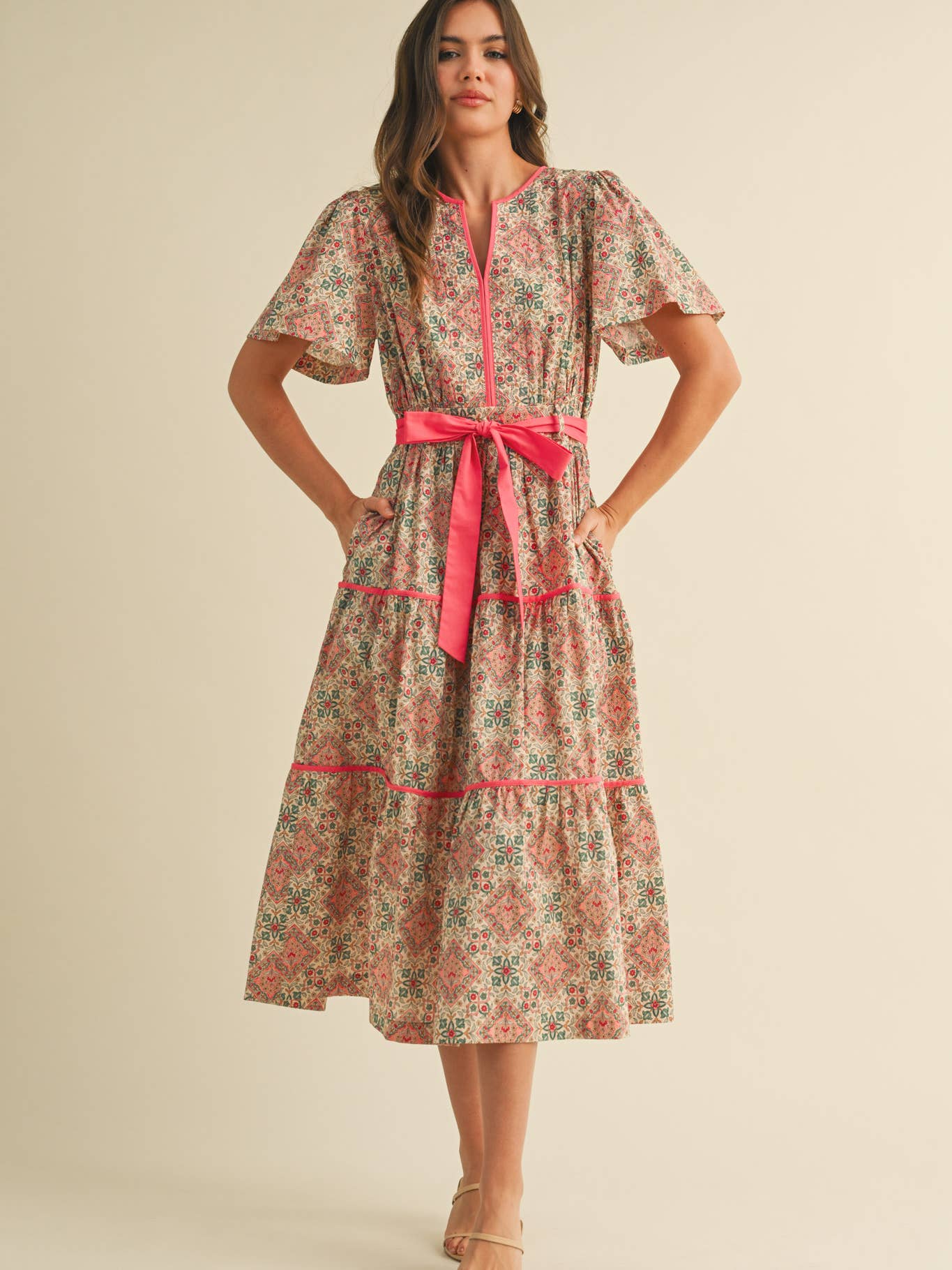 • Contrast sash belt with loops for a polished waistline