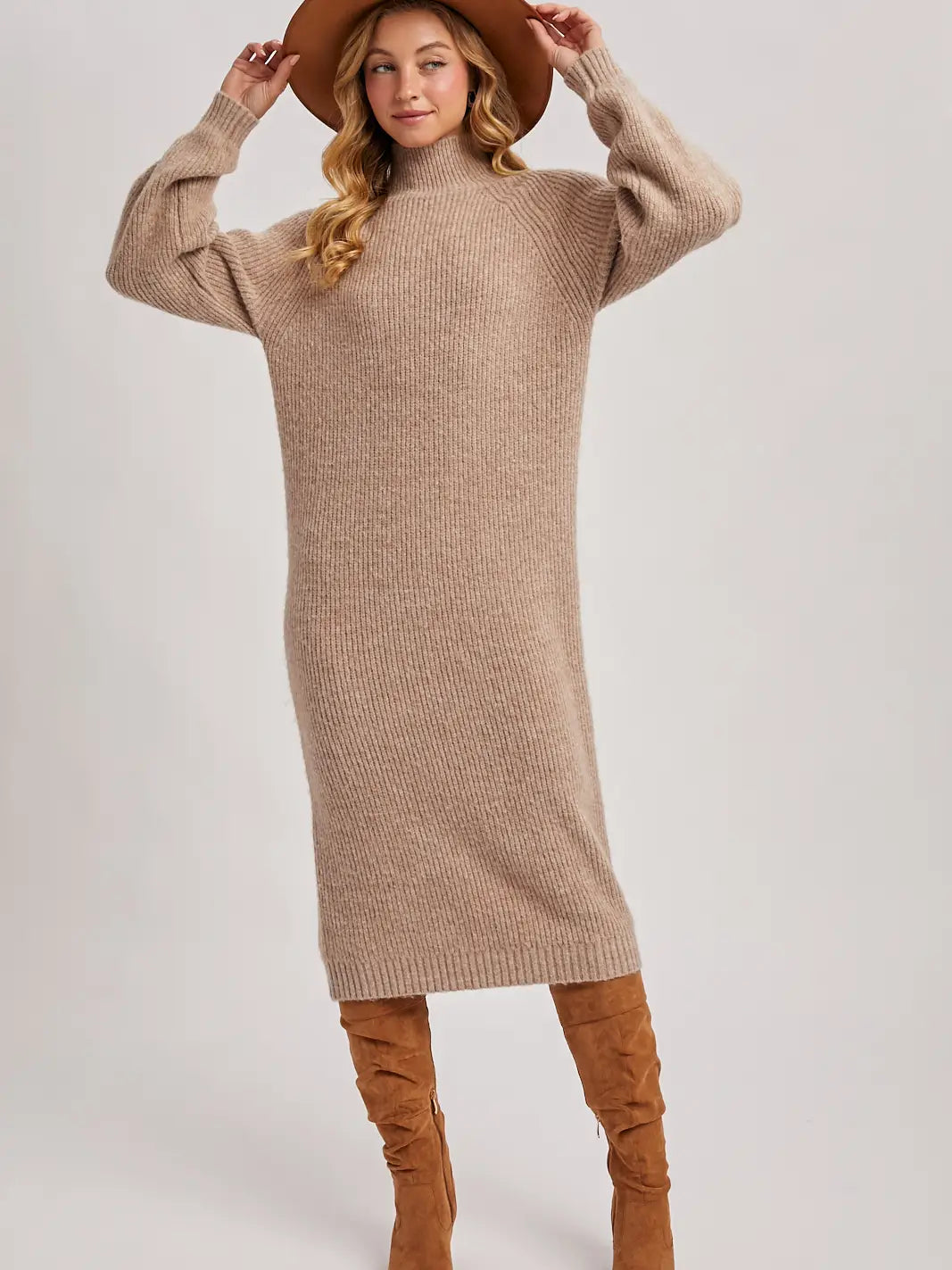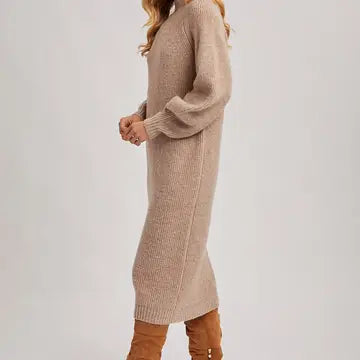 The Mock Neck Knit Sweater Midi Dress is the perfect balance of chic and cozy. Designed with a mock neck and a flattering midi length, this dress effortlessly elevates your look while keeping you warm. Whether styled with sneakers for a casual outing or paired with boots for a polished finish, this dress transitions seamlessly from day to night.