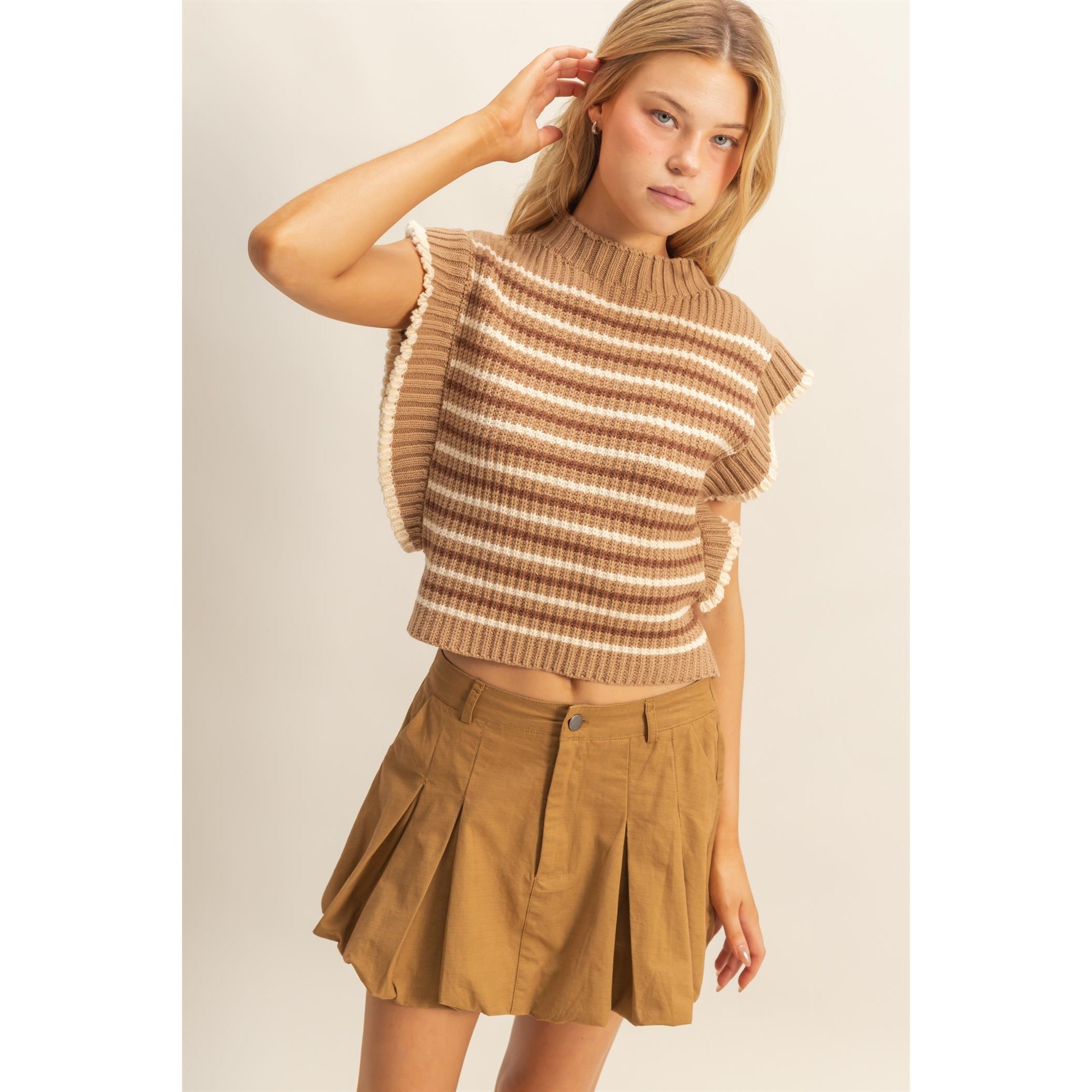 • Cropped length pairs perfectly with high-waisted jeans or skirts