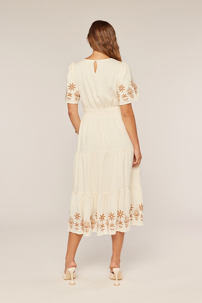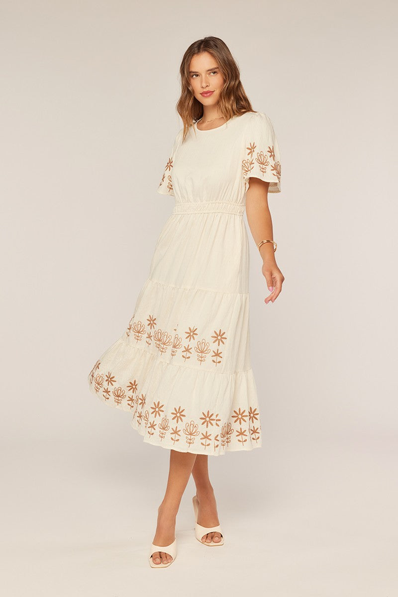 This Embroidered Puff Sleeve Midi Dress is a beautiful mix of elegance and charm. Crafted with a flowy tiered silhouette, it features detailed floral embroidery along the sleeves and hem, creating a unique boho-chic vibe. The elastic waist enhances comfort while providing shape, and the midi length makes it a perfect choice for both casual outings and special occasions.