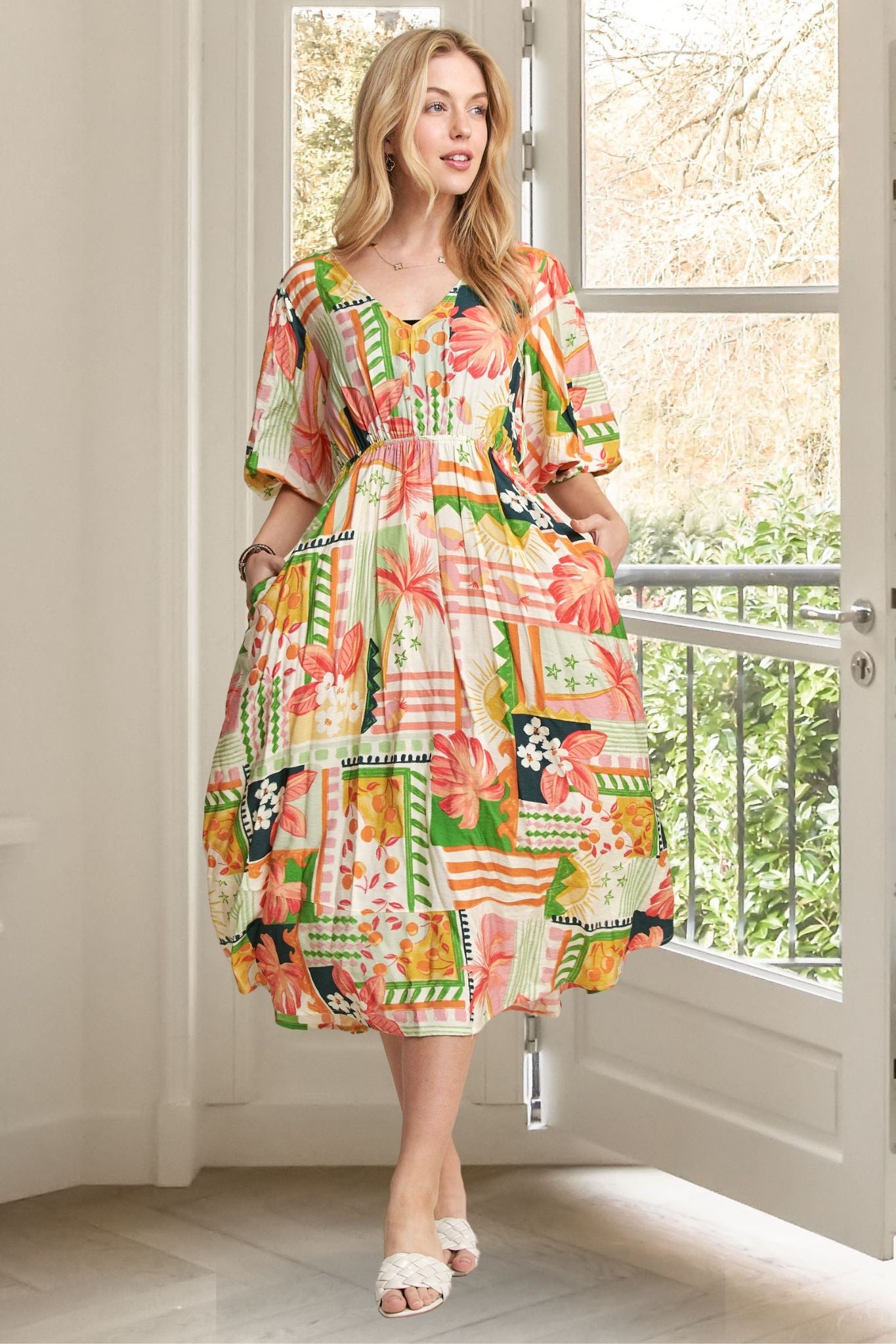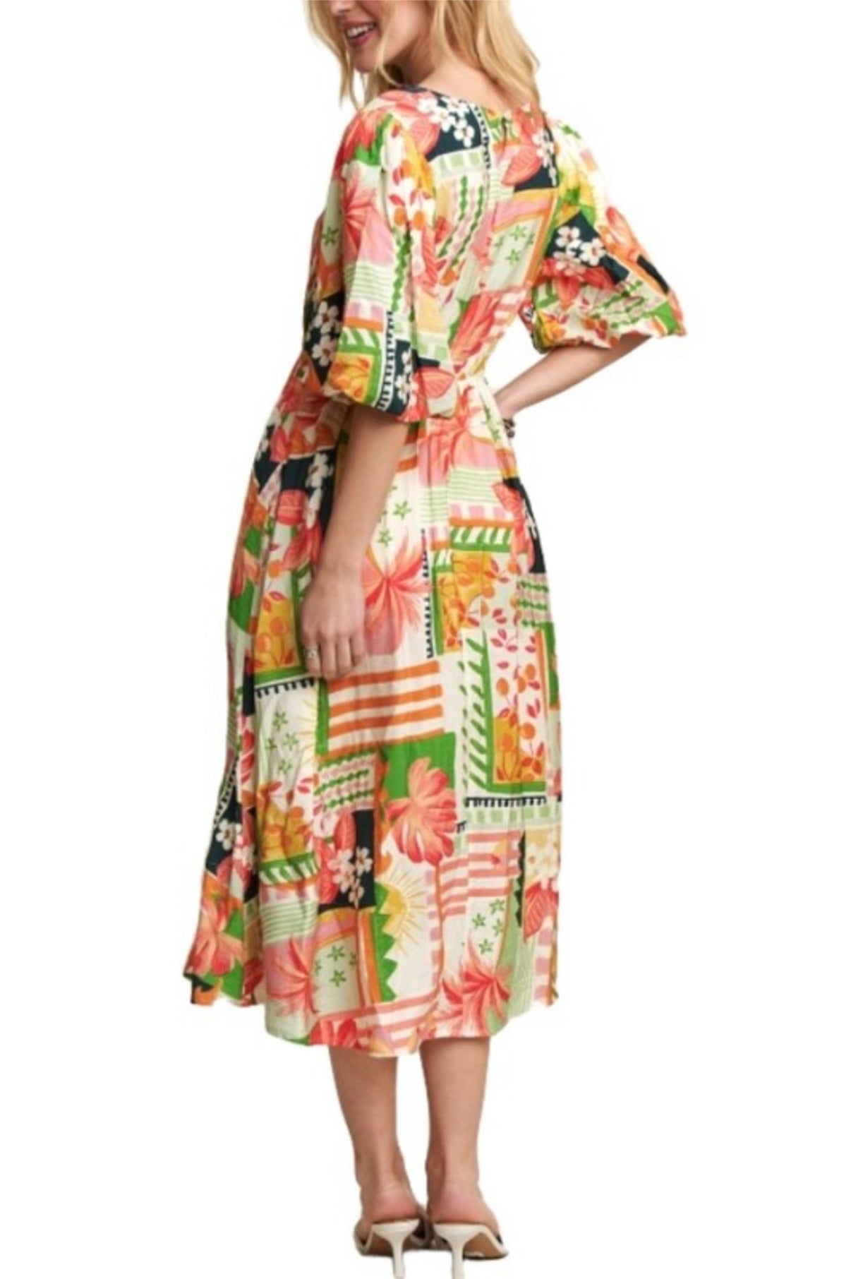 This floral sundress pairs beautifully with sandals or flats for a light, effortless everyday look. Add a cardigan or structured jacket to make it a versatile piece for multiple seasons. Perfect for daytime outings, church, or family gatherings.