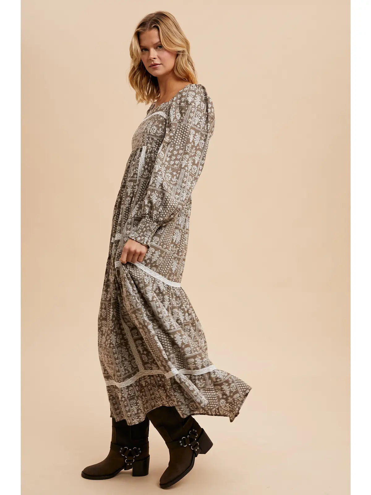 The Patchwork Print Dress is a blend of vintage charm and modern comfort. With its lace trim details and flowy silhouette, it’s perfect for weekend outings, seasonal gatherings, or an effortlessly chic everyday look.