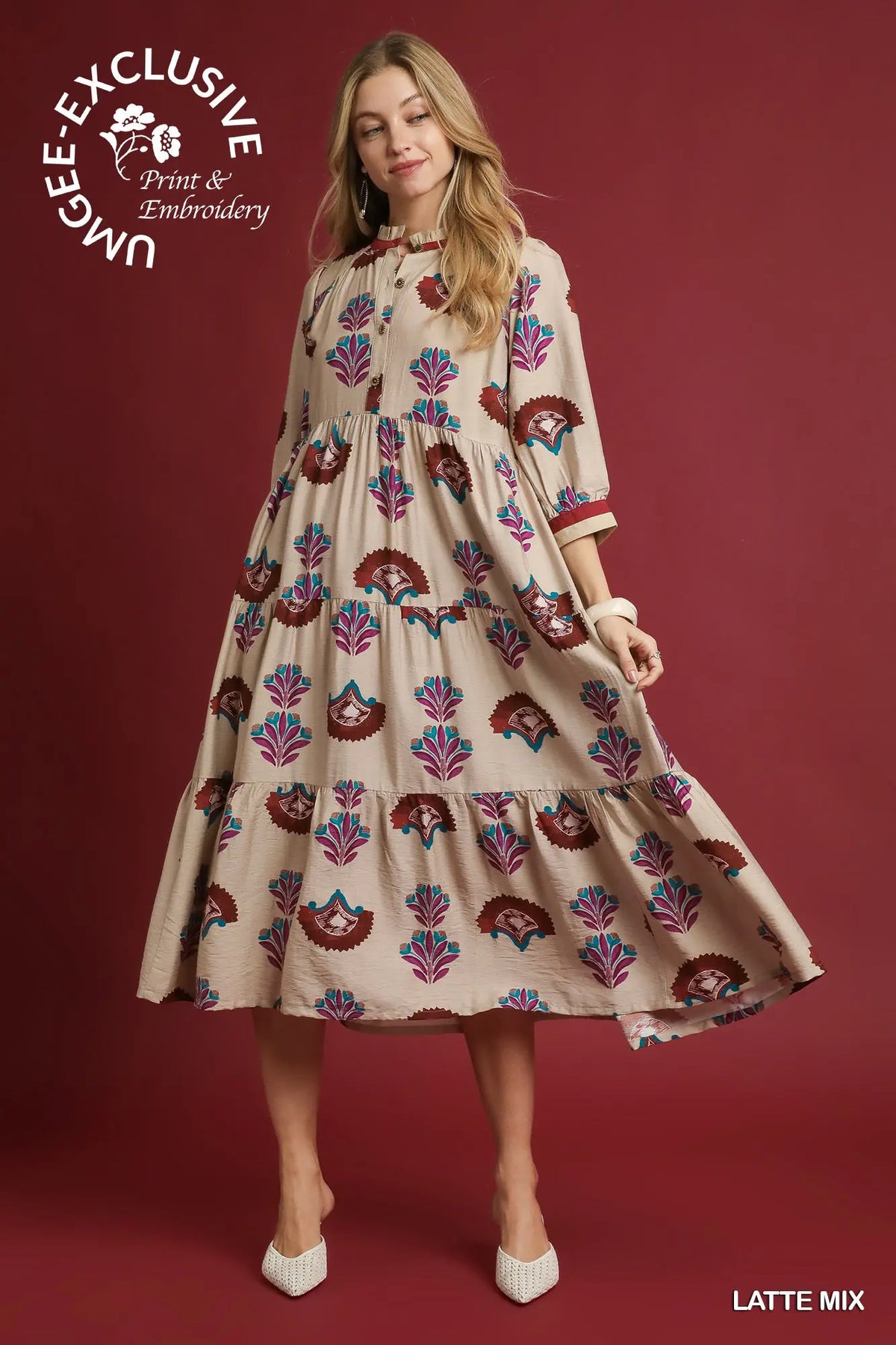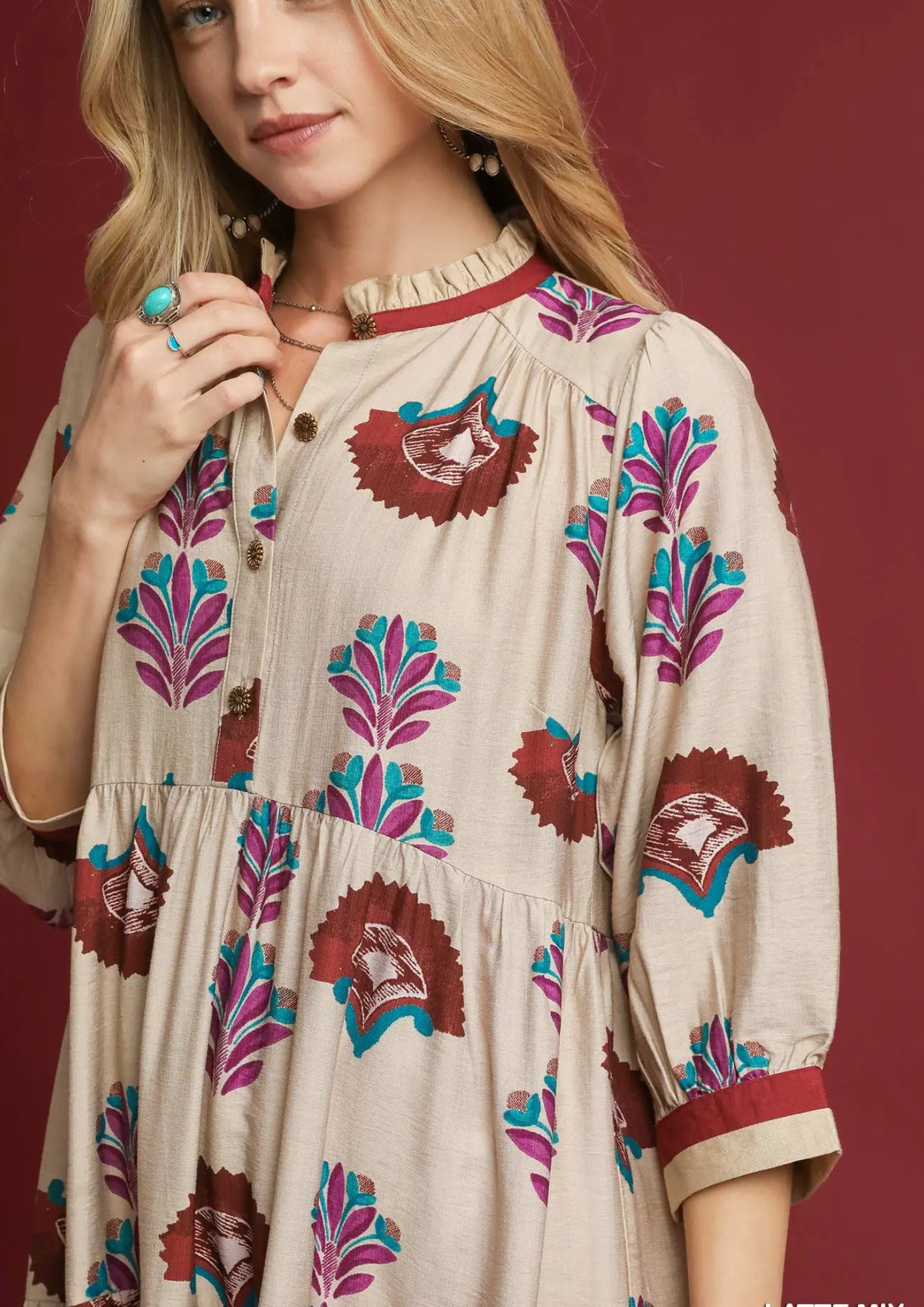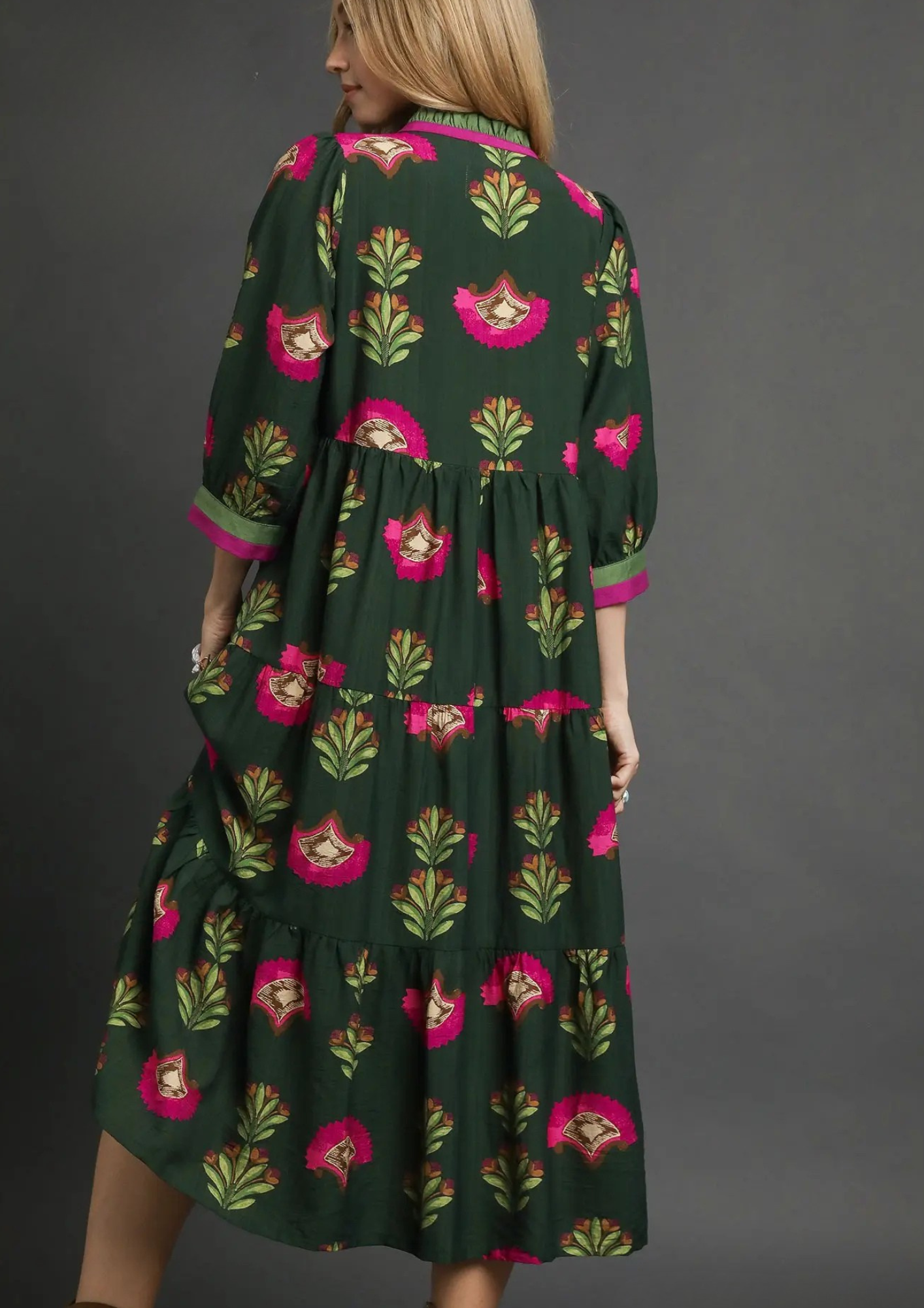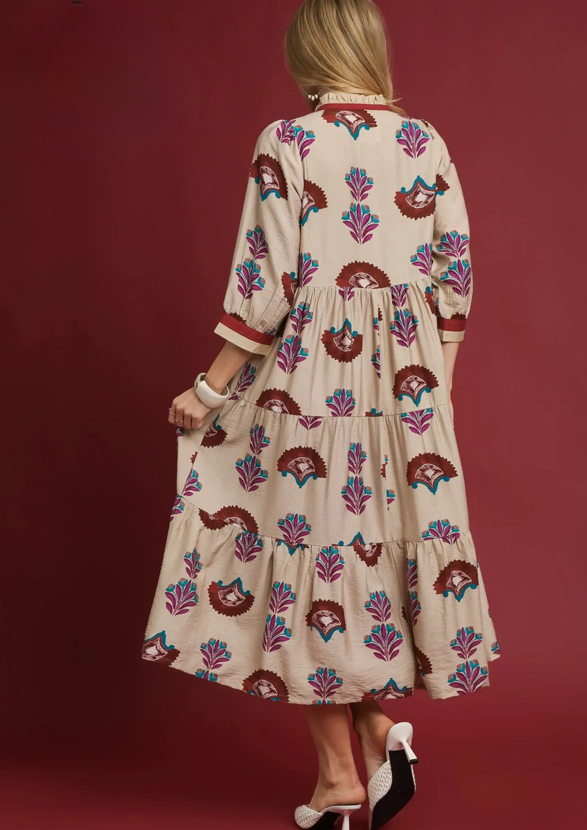 This dress pairs a bold botanical print with a classic, easy-to-wear silhouette. Perfect for autumn outings, casual gatherings, or dressing up with boots and accessories for a chic seasonal look.