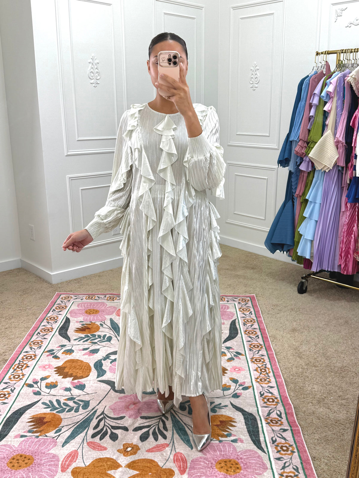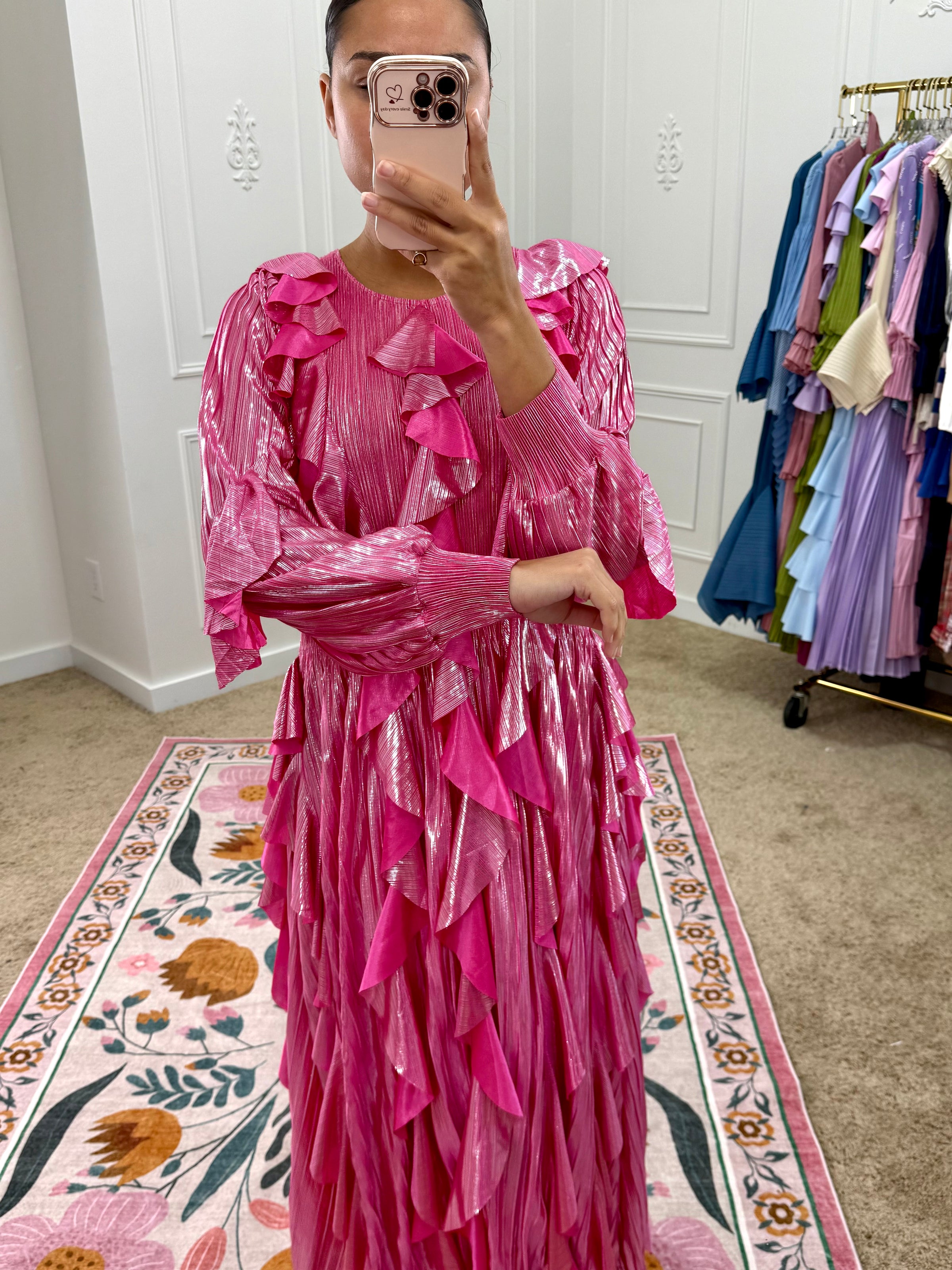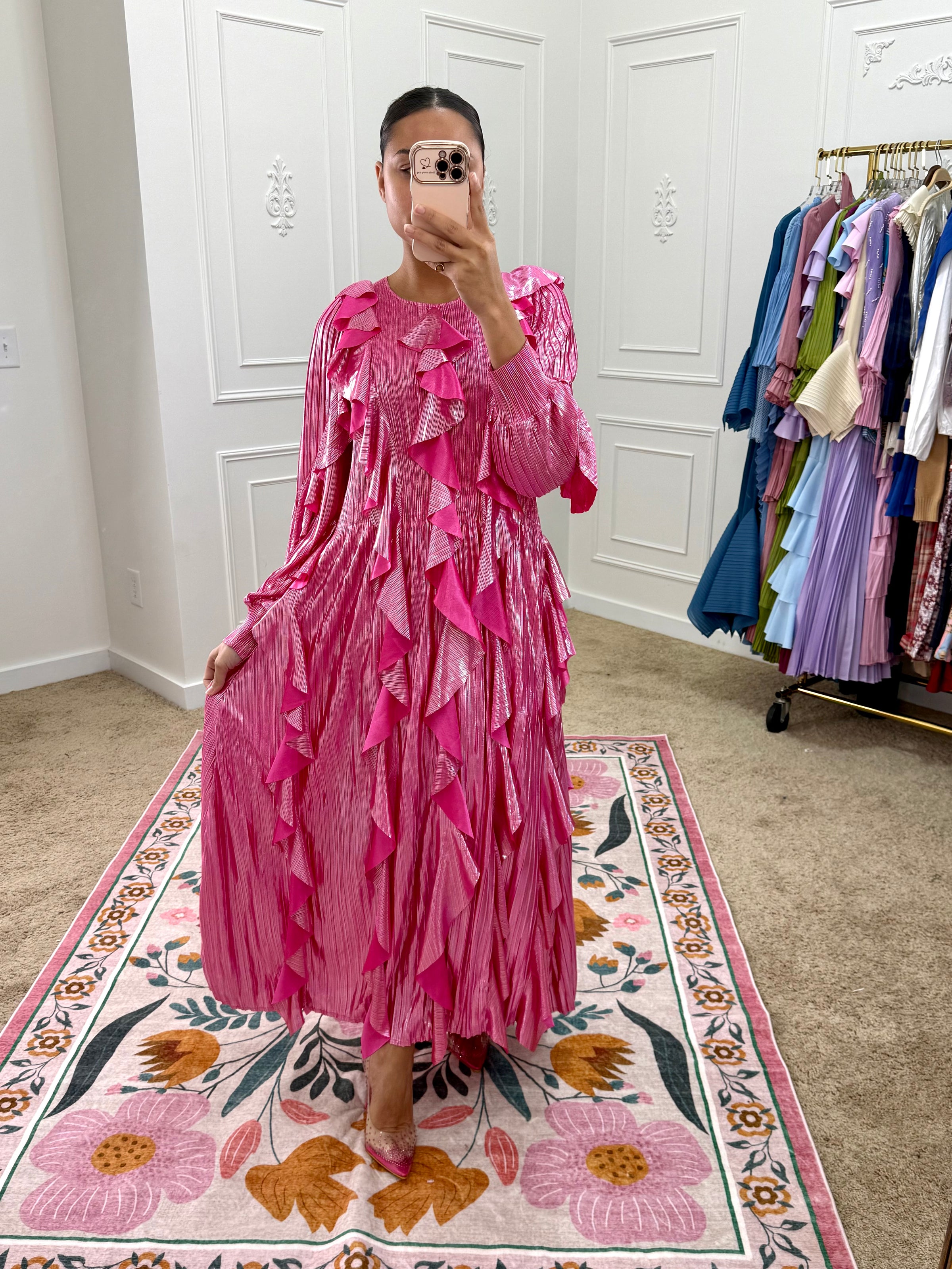 Wash separately on cold delicate cycle and air dry. Do not dry clean or use a dryer. If your item arrives with wrinkles, gently steam in a vertical motion. Avoid steaming pleats to avoid damage.