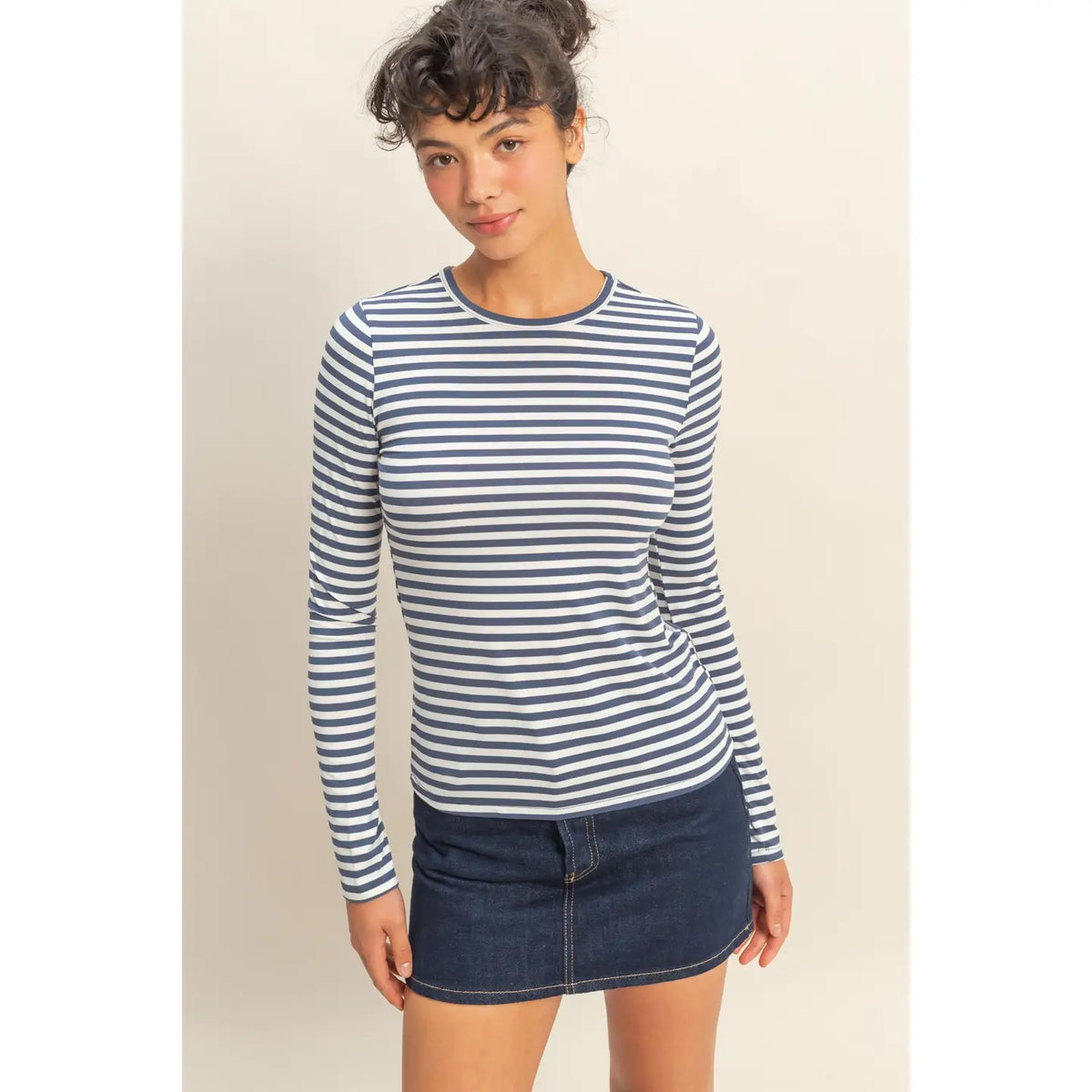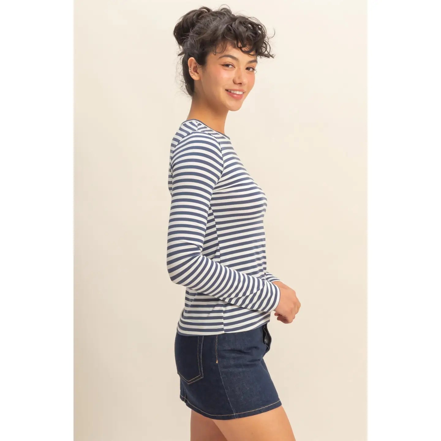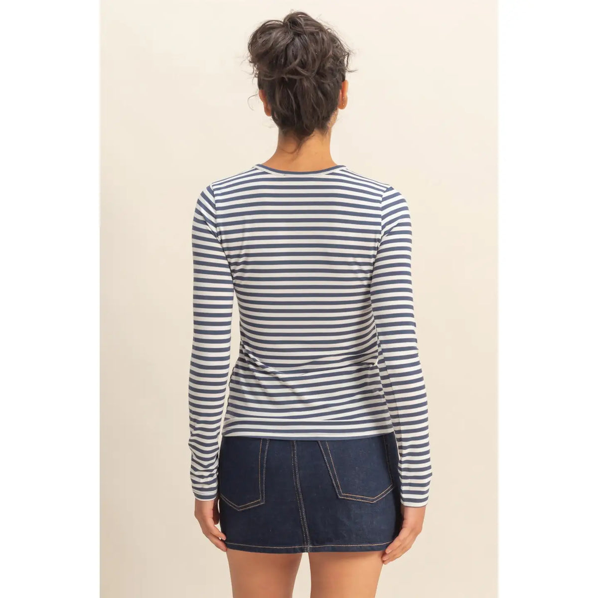 A wardrobe essential that never goes out of style, this striped crew neck top is the perfect blend of classic and modern. Its soft, stretchy fabric ensures all-day comfort, while its versatile design makes it easy to dress up or down. Whether layered under a blazer or worn casually with denim, this piece is ideal for year-round wear.